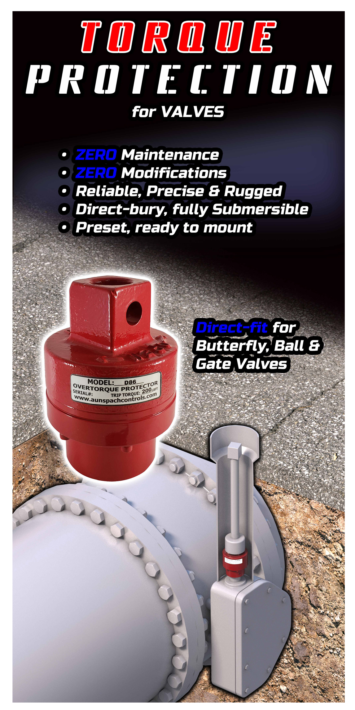 The Model D86 Valve Overtorque Protector ™ is permanently mounted on the valve operating nut. No special tools or valve modifications are required. It’s easily mounted on direct buried valves without excavation. Operating torque is applied to the 2-inch AWWA nut on the Model D86 then transmitted through the D86 to the valve. The Model D86 will transmit sufficient torque to free up and operate the valve. If excessive torque is applied, the drive will disengage and prevent valve damage. The drive will automatically re-engage at the original setting with further rotation in either direction.